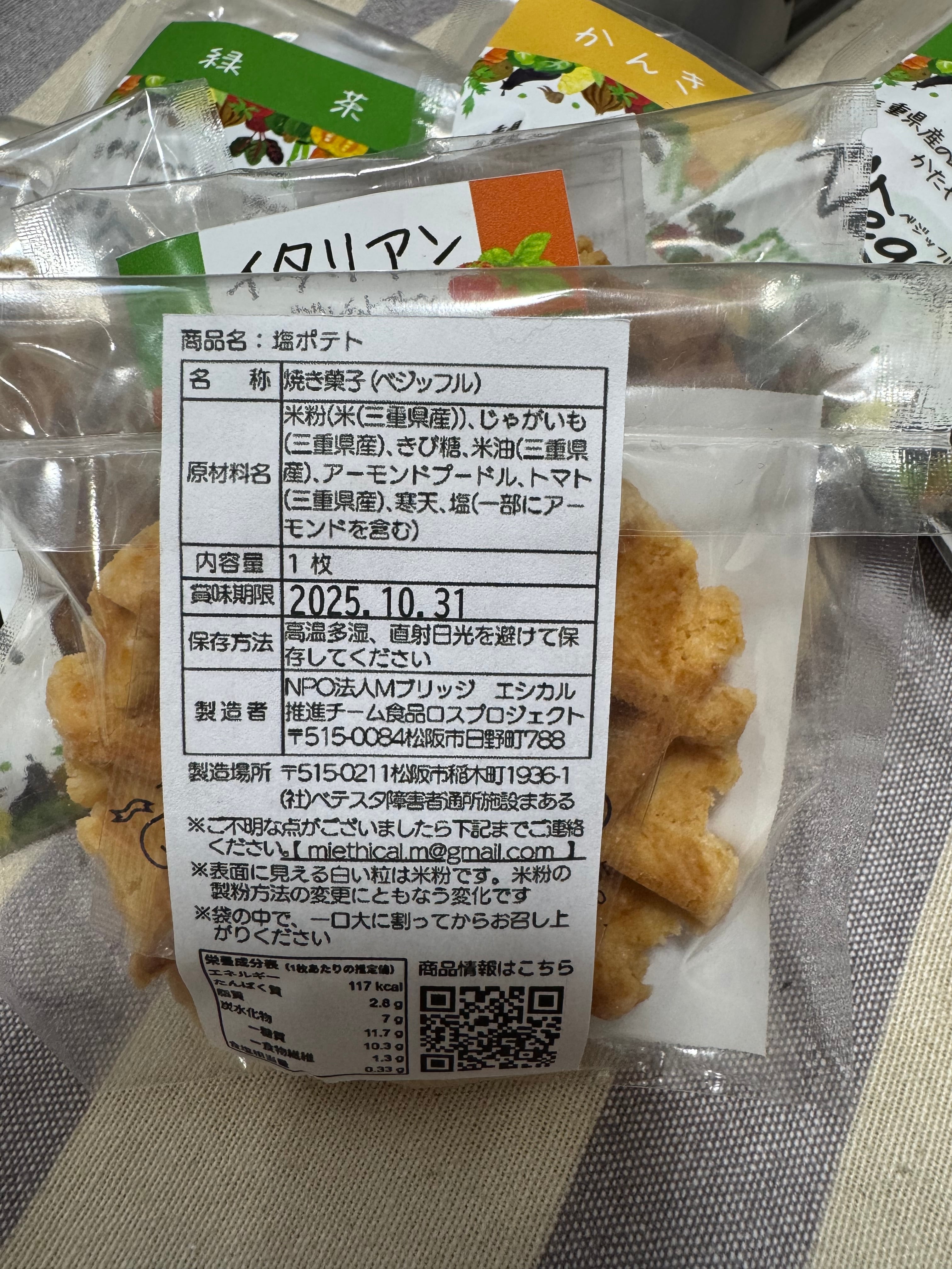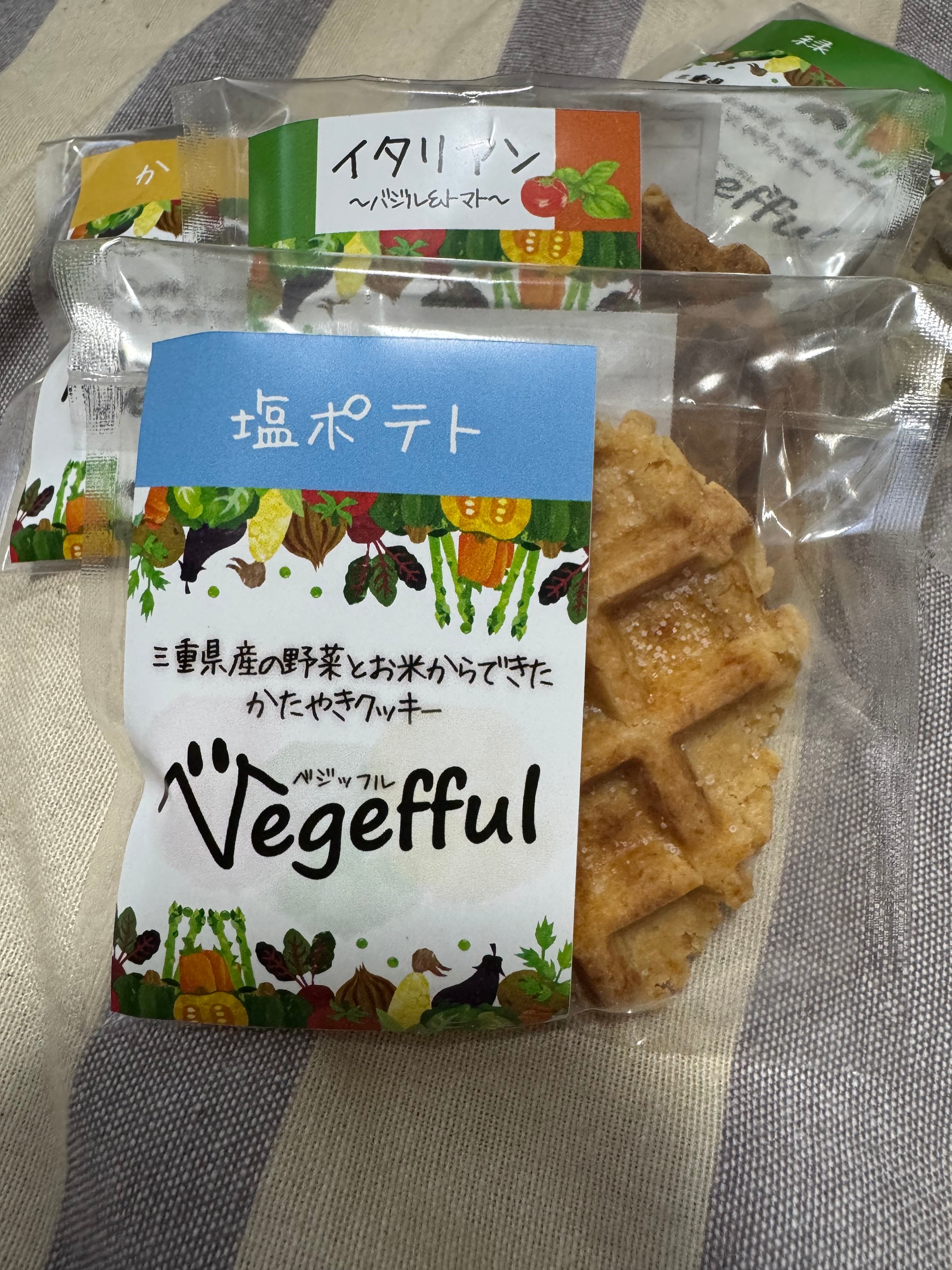 ベジタブル(野菜)× ワッフル型のかたやきクッキーから名付けた『ベジッフル』。